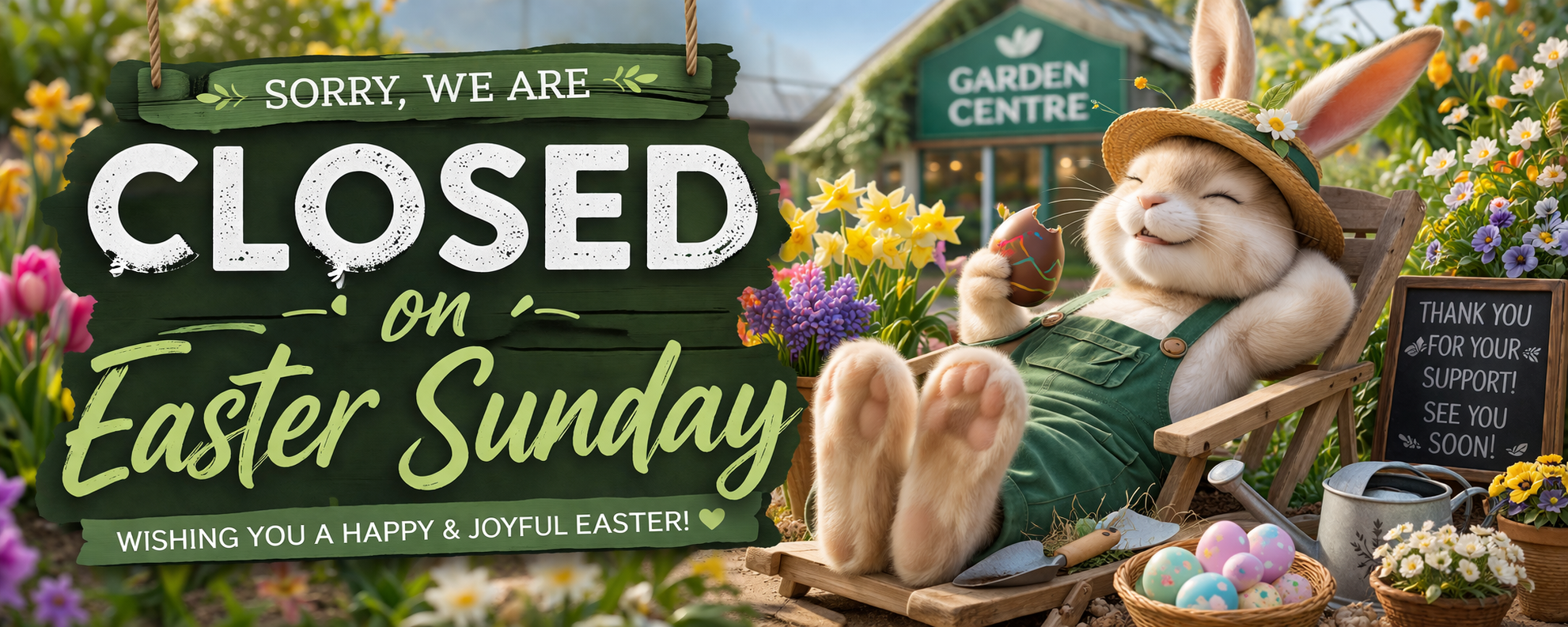 We are OPEN Good Friday, Easter Saturday and Easter Monday as normal. We are closed on Easter Sunday.